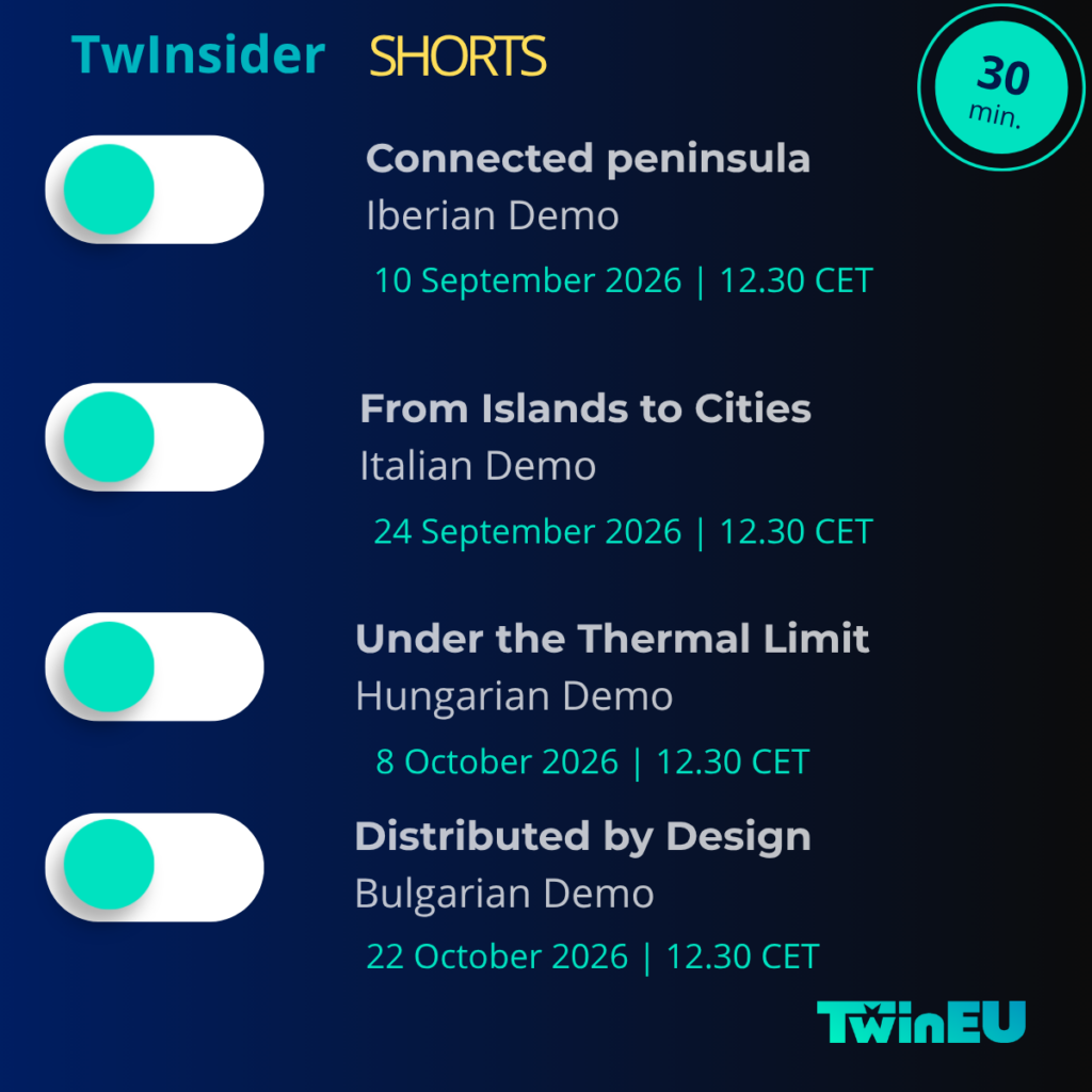 TwinEU is launching a new webinar series to showcase its 8 demos and their achievments over the course of the project. From May to October 2026 the series will feature eight concise, 30-minute sessions – each spotlighting one of TwinEU’s demonstrators.